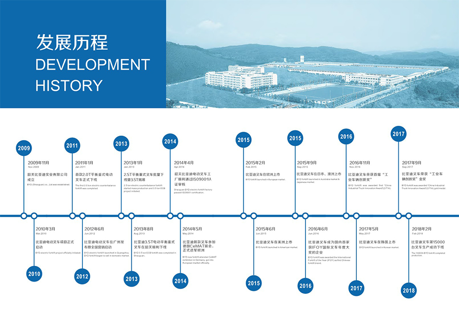 安徽比迪新能源科技有限公司是韶關(guān)比亞迪實業(yè)有限公司在安徽設(shè)立的銷售服務(wù)中心,全權(quán)負責(zé)比亞迪叉車區(qū)域銷售與售后服務(wù)業(yè)務(wù),并服務(wù)于重點大客戶和集團客戶,目前已經(jīng)形成成熟穩(wěn)定的銷售服務(wù)團隊。安徽比迪堅持奉行“客戶導(dǎo)向,誠信為本、信譽為上”的宗旨,注重企業(yè)品牌建設(shè)和質(zhì)量誠信建設(shè)。公司主要從事電動叉車及小型搬運車輛銷售,電動叉車包括電動平衡重叉車系列、電動倉儲叉車系列、電動牽引車系列等。電動叉車應(yīng)用領(lǐng)域非常廣泛,其下游用戶覆蓋制造業(yè)、物流業(yè)、建筑業(yè)、食品、紡織業(yè)、化學(xué)工業(yè)、冶金業(yè)、能源業(yè)等眾多行業(yè)。電動叉車可大大節(jié)約人力成本、運營成本,提高勞動效率,市場空間廣闊。未來,安徽比迪將以質(zhì)量優(yōu)化、服務(wù)及時化、品牌差異化為重點,進一步利用自身規(guī)模優(yōu)勢、技術(shù)優(yōu)勢和渠道優(yōu)勢,實現(xiàn)產(chǎn)品結(jié)構(gòu)化、差異化,更好的為客戶提供全套物料搬運解決方案。歡迎各界朋友蒞臨參觀、指導(dǎo)和業(yè)務(wù)洽談!依托比亞迪集團的強大的運營網(wǎng)絡(luò),歷經(jīng)近十年的匠心打造,比亞迪電動叉車足跡已遍布中國各地,并成功進入英國、德國、法國、意大利、西班牙、荷蘭、美國、加拿大、巴西、新加坡、日本、韓國、澳大利亞等多個海外市場,覆蓋六大洲。比亞迪叉車以新能源技術(shù)和實力為根基,為客戶提供全流程的場內(nèi)物流整體解決方案,降低物流搬運成本、提升物流搬用效率,以綠色、低碳的革命性技術(shù)和產(chǎn)品,從容應(yīng)對各種復(fù)雜工況,為客戶創(chuàng)造更大價值。比亞迪相信技術(shù)可以改變世界,造福人類。比亞迪不僅擁有綠色的夢想,更有將綠色夢想變成現(xiàn)實的技術(shù)和解決方案。立足好的新能源技術(shù),打造“四大綠色夢想”--太陽能電站、儲能電站、電動車和軌道交通,改變傳統(tǒng)的能源消耗方式,改善環(huán)境,實現(xiàn)人類的可持續(xù)發(fā)展。