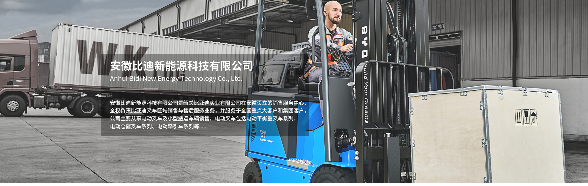 安徽比迪新能源科技有限公司是韶關(guān)比亞迪實(shí)業(yè)有限公司在安徽設(shè)立的銷(xiāo)售服務(wù)中心,全權(quán)負(fù)責(zé)比亞迪叉車(chē)區(qū)域銷(xiāo)售與售后服務(wù)業(yè)務(wù),并服務(wù)于重點(diǎn)大客戶(hù)和集團(tuán)客戶(hù),目前已經(jīng)形成成熟穩(wěn)定的銷(xiāo)售服務(wù)團(tuán)隊(duì)。安徽比迪堅(jiān)持奉行“客戶(hù)導(dǎo)向,誠(chéng)信為本、信譽(yù)為上”的宗旨,注重企業(yè)品牌建設(shè)和質(zhì)量誠(chéng)信建設(shè)。公司主要從事電動(dòng)叉車(chē)及小型搬運(yùn)車(chē)輛銷(xiāo)售,電動(dòng)叉車(chē)包括電動(dòng)平衡重叉車(chē)系列、電動(dòng)倉(cāng)儲(chǔ)叉車(chē)系列、電動(dòng)牽引車(chē)系列等。電動(dòng)叉車(chē)應(yīng)用領(lǐng)域非常...